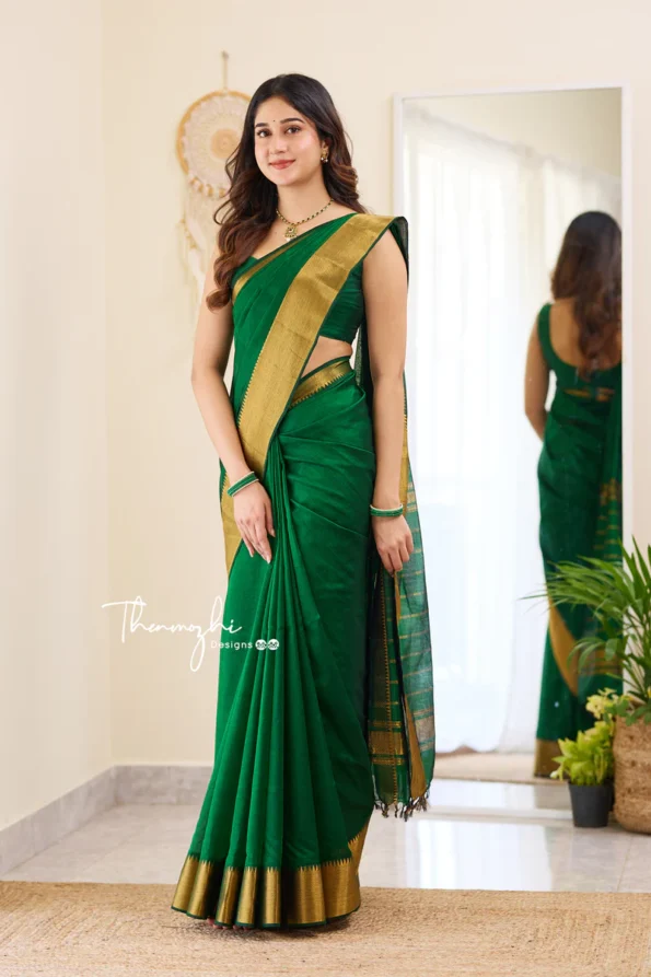 Radiant Green Handwoven Mangalagiri Silk Cotton Saree