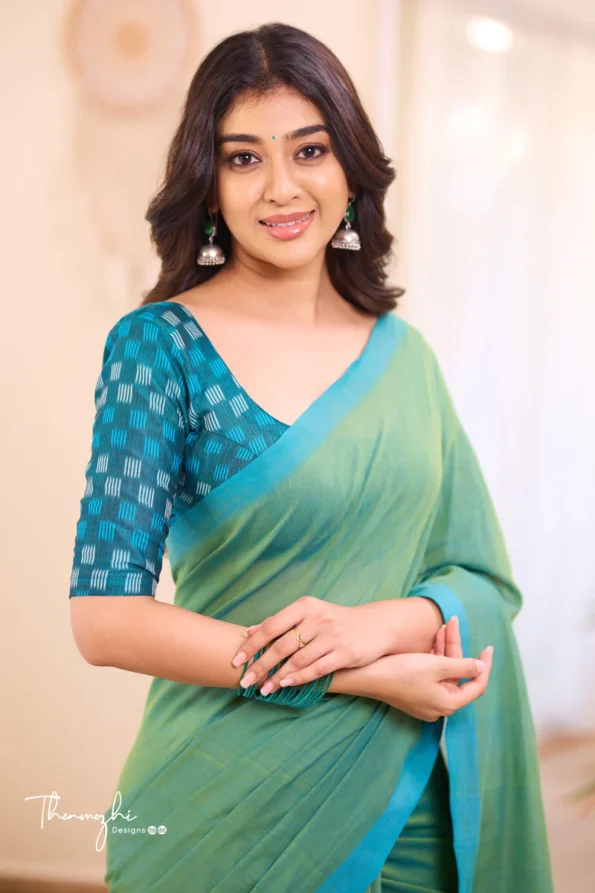 Touch of Sea Green -Green Mangalagiri Plain Cotton Saree